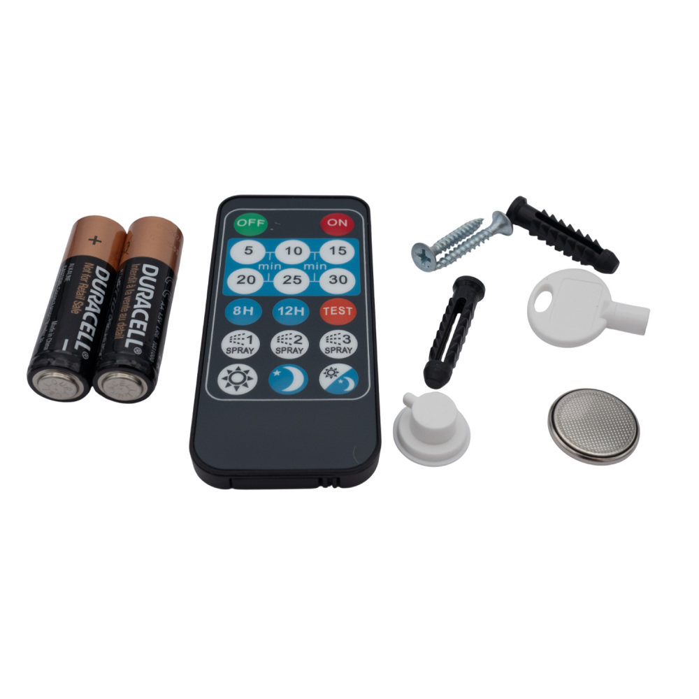 Autonomie d'un aérosol jusqu'à 3 mois et des piles jusqu'à 6 mois suivant la programmation.