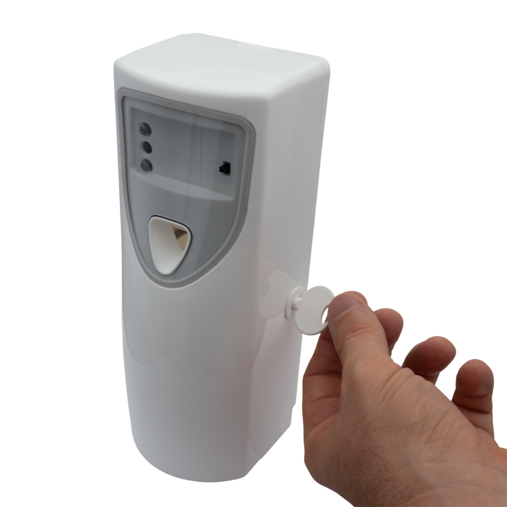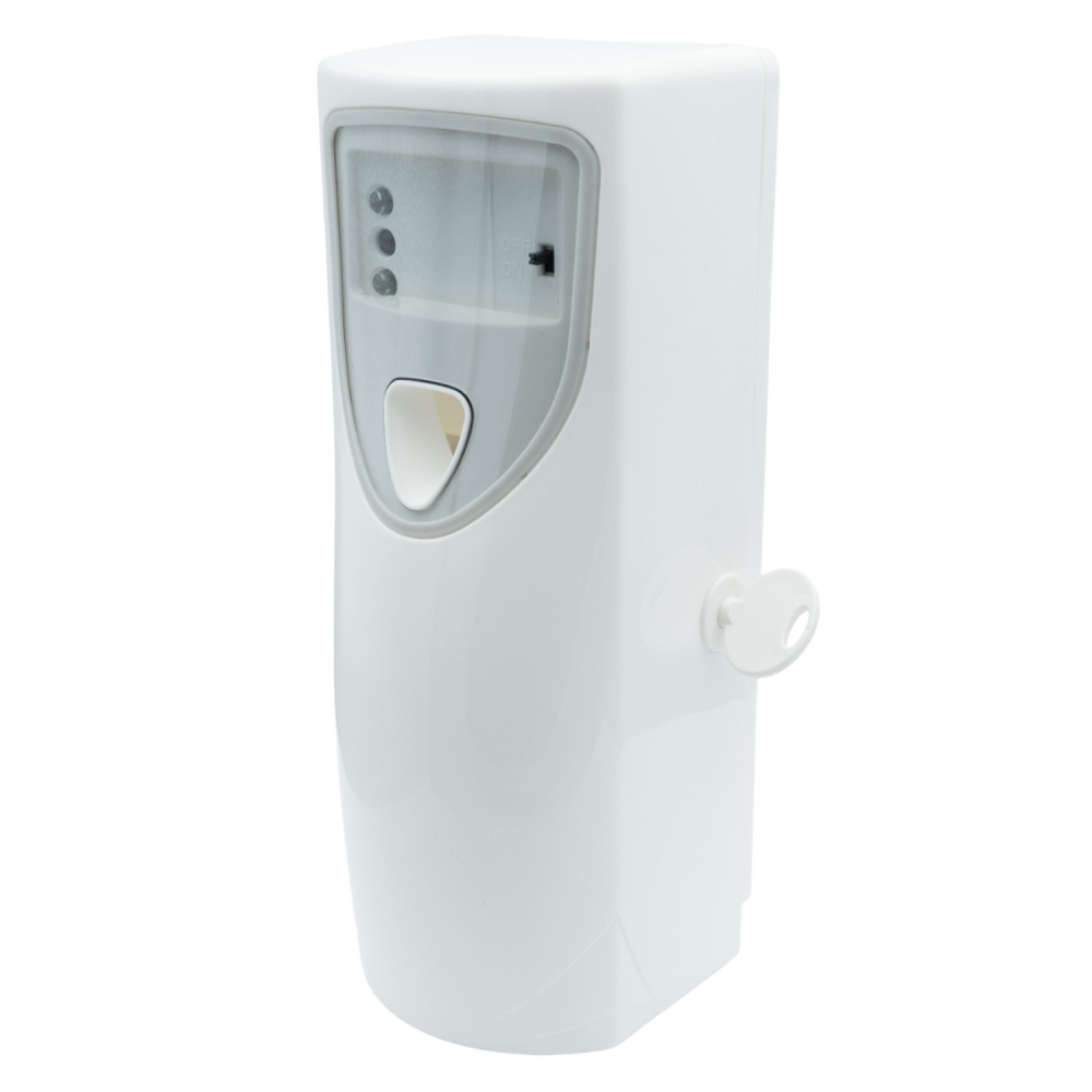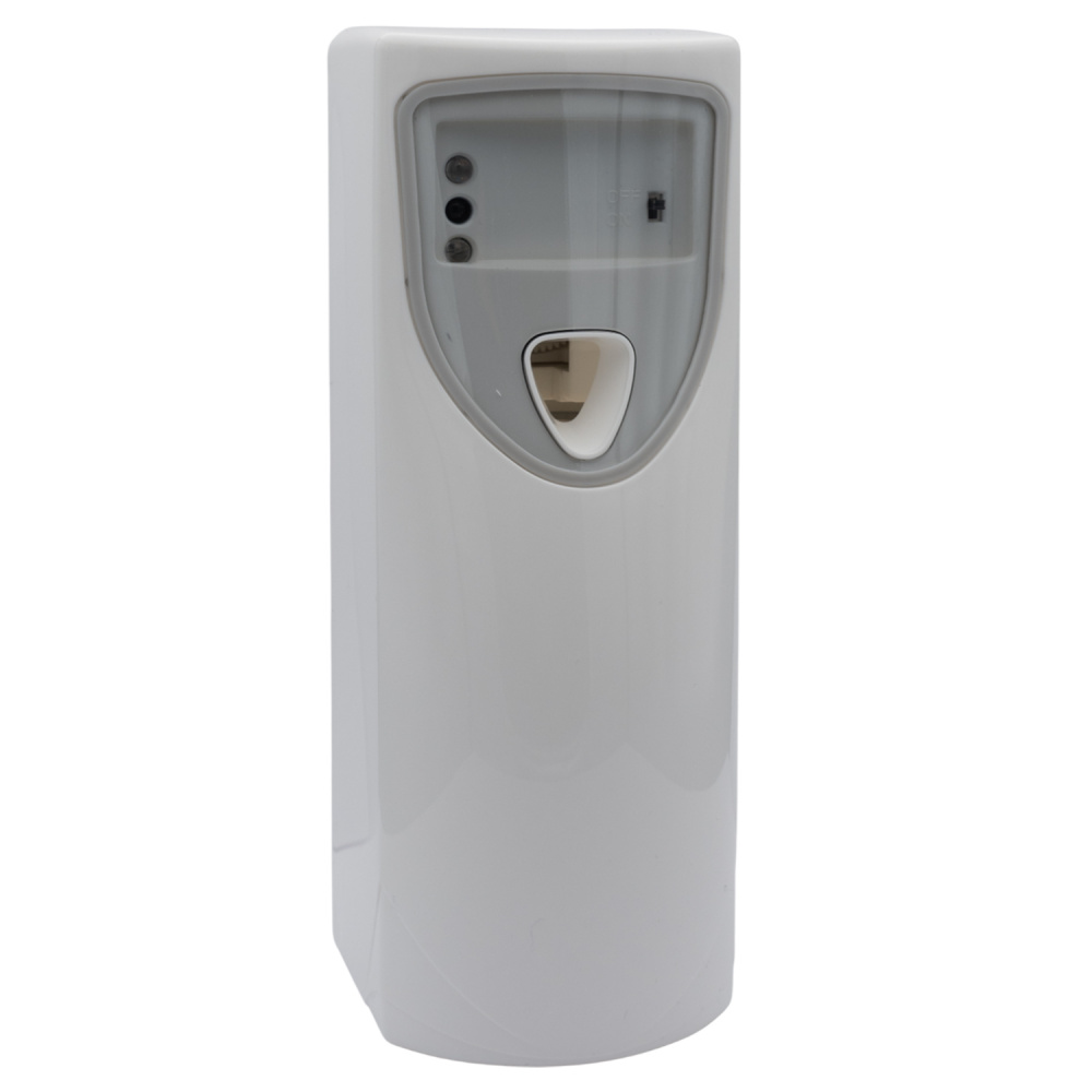 Le dispositif se fixe aisément au mur ou peut être posé sur une surface stable. Sa diffusion automatique évite toute manipulation directe du produit.