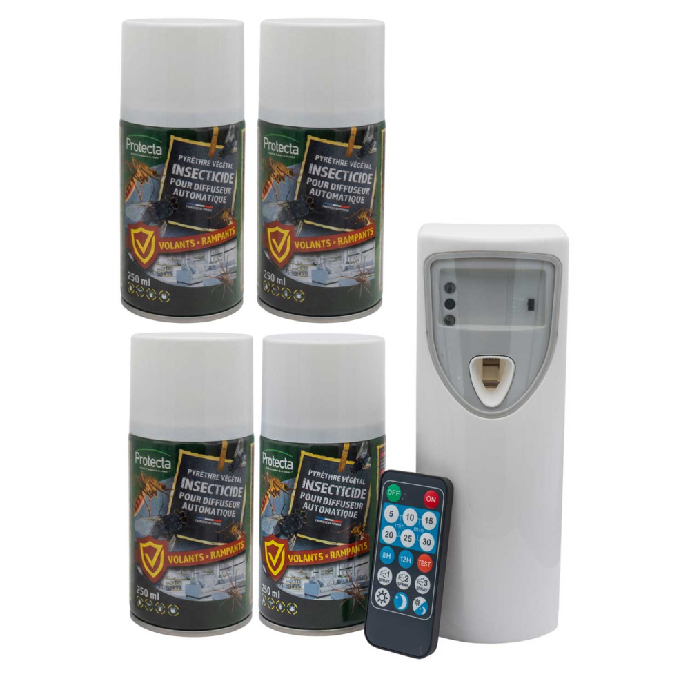 Pack diffuseur automatique au Pyrèthre Végétal + 4 Recharges 250 ml + télécommande