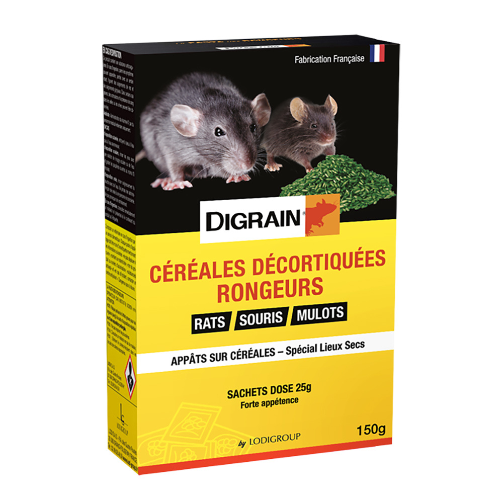 Appât céréales décortiquées anti-rats Digrain Étui de 150g (6x25g)