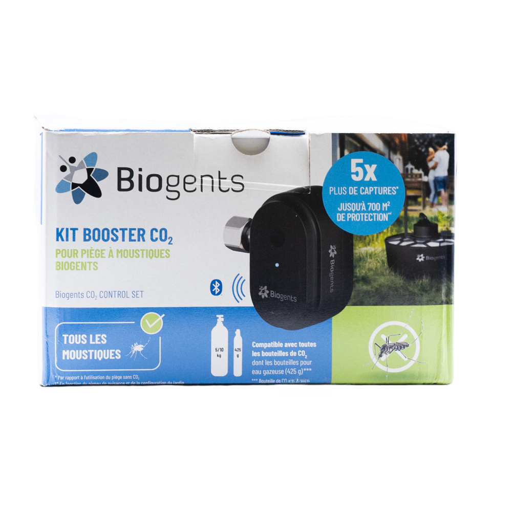 Le kit Booster CO₂ Biogents améliore l’efficacité des pièges à moustiques en reproduisant la respiration humaine grâce à la diffusion de CO₂, l’un des principaux signaux utilisés par les moustiques pour localiser leurs victimes. Associé à un piège Biogents, ce système permet d’augmenter jusqu’à 5 fois les captures et d’étendre la zone de protection jusqu’à 700 m². Bénéfices produit
