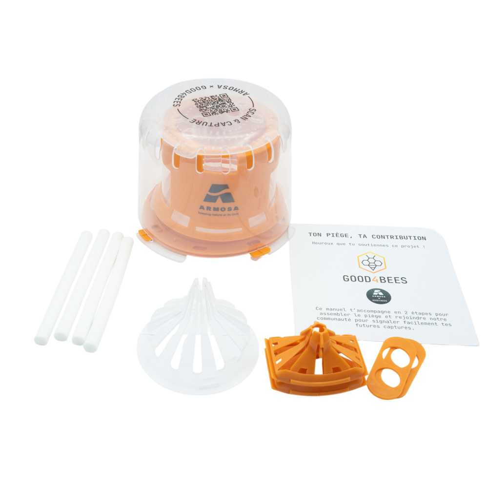 Le piège se monte facilement et peut être installé dans différentes zones à risque selon la période et le niveau de pression observé. Son format compact permet une mise en place simple dans un jardin, près d’un rucher ou dans tout espace extérieur exposé au frelon asiatique.