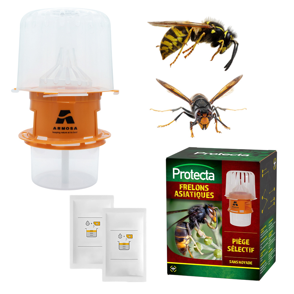 Piège sélectif Protecta frelon asiatique, frelons et guêpes avec 2 attractifs de 50 ml - Protège les abeilles