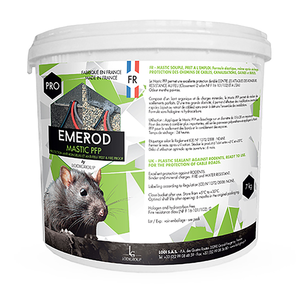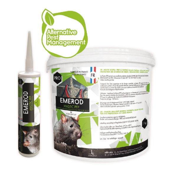 Mastic souple anti-rongeurs composé d’un liant organique et de charges minérales. Emerod Mastic PFP contient un répulsif olfactif. Idéal pour boucher des trous ou obturer des passages, gaines, chemins de câbles, tableaux électriques ainsi que tout autre système électrique et technologique. Il résiste aux attaques des rongeurs et du feu.