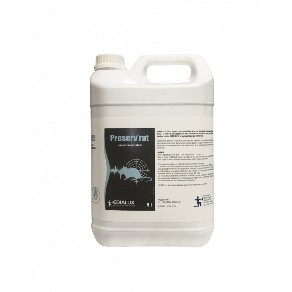 PRESERV'RAT liquide concentré anti-bactérien et anti-odeurs pour piège à rats Ekomille - Bidon de 5 l