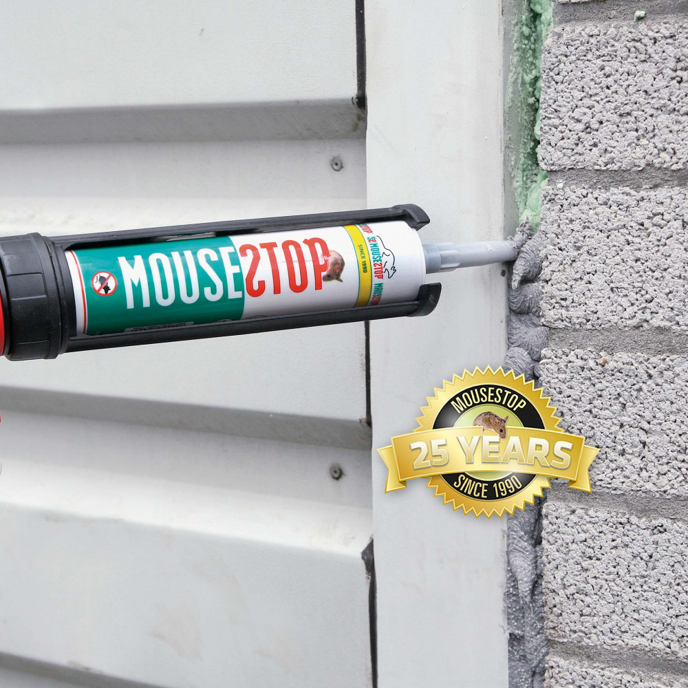 MouseStop est une pâte d'étanchéité contre les rongeurs, rats et souris. Elle permet de lutter contre les nuisibles tout en restant sûre pour eux. MouseStop est utilisé par l’industrie internationale de lutte contre les nuisibles depuis 1990. Une fois appliquée, la barrière est immédiatement active. La surface extérieure durcit doucement mais l'intérieur reste mou. Lorsque les rongeurs percent la surface durcie, son noyau interne souple les bloque immédiatement.