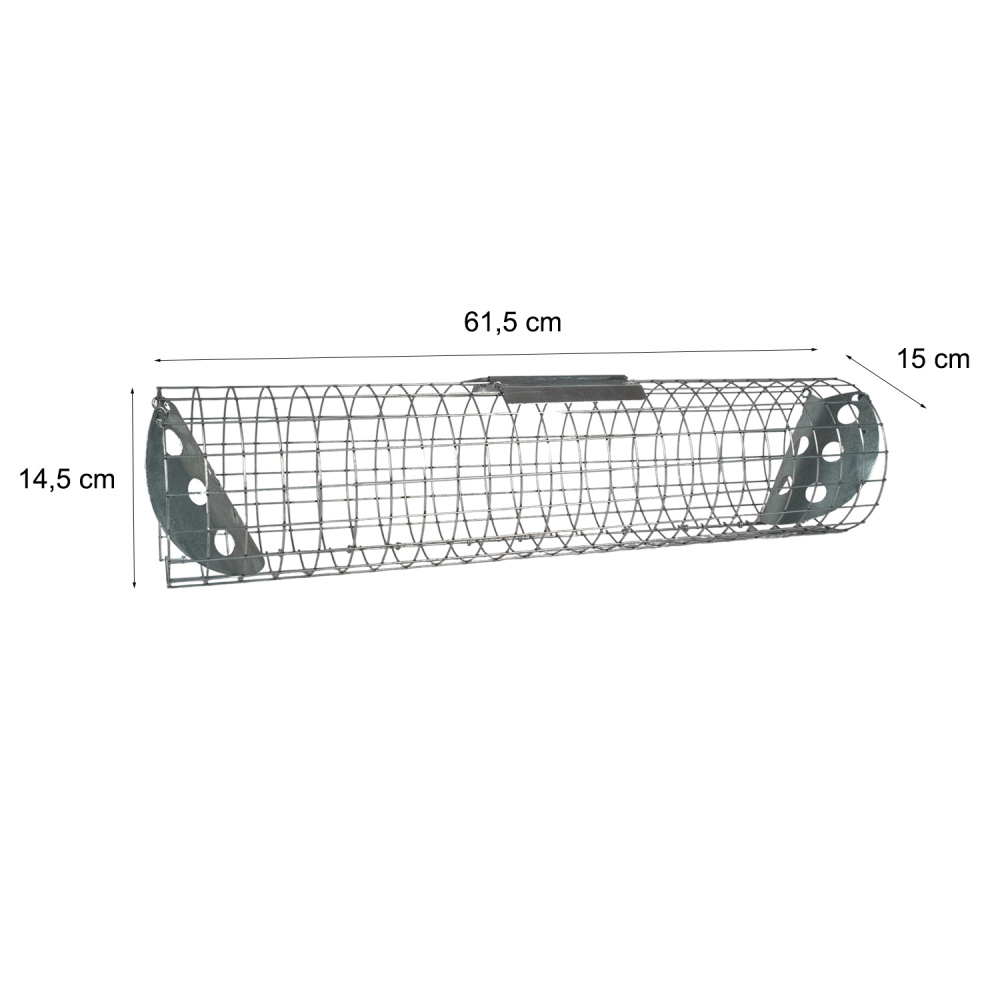 Cette nasse allongée de 61 cm de longueur et 15 cm de diamètre est équipée de deux entrées à clapets anti-retour permettant une capture de tous les rongeurs de moyenne dimension.