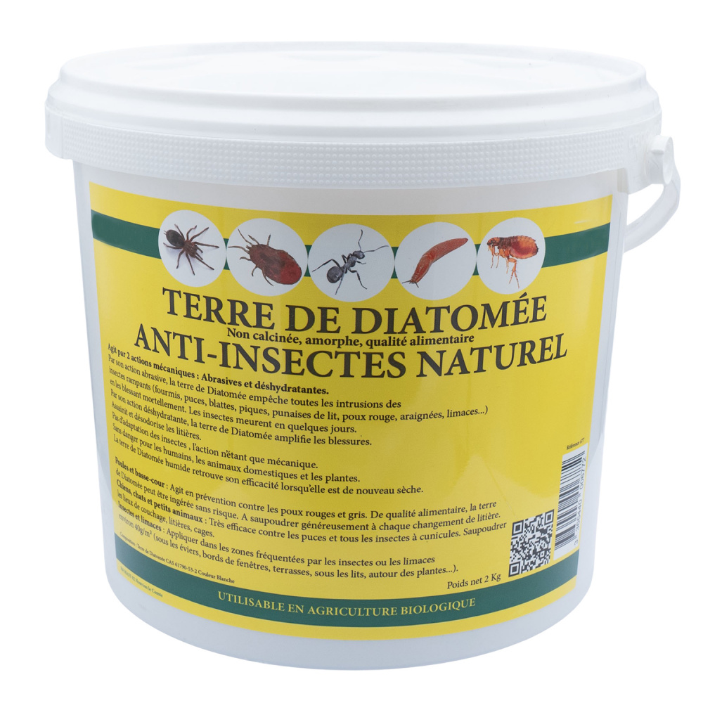 Par son action abrasive, la terre de diatomée empêche toutes les intrusions des insectes rampants (fourmis, puces, blattes, piques, punaises de lit, poux rouge, araignées, limaces...) en les blessant mortellement. Les insectes meurent en quelques jours.
