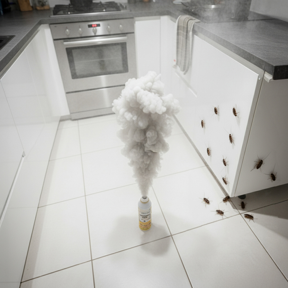 Aérosol pour le traitement des locaux dans le domaine de l'hygiène publique, efficace sur blattes, puces, punaises, mouches, poissons d'argent, etc...