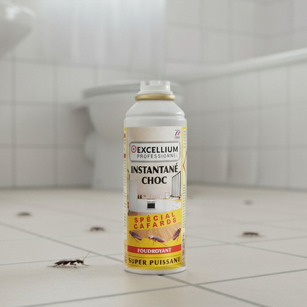 Lot de 12 aérosols 150ml instantané choc Excellium spécial cafards 1 pièce pour professionnels du traitement des cafards.