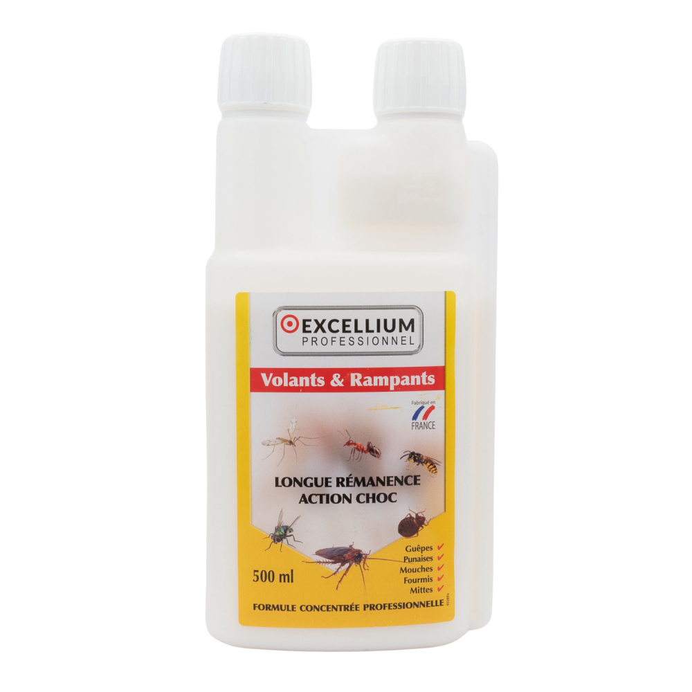 Ce nouveau produit dans la gamme Excellium est également efficace contre un grand nombre d'insectes rampants et volants, tels que les blattes, les fourmis, les mouches, les moustiques, les mites, les arachnides (araignées, acariens), les guêpes ... Il agit par contact et par ingestion sur les insectes. La cyperméthrine est une molécule de la famille des pyréthrinoïdes, elle confère au produit une action choc associée à une protection longue durée.