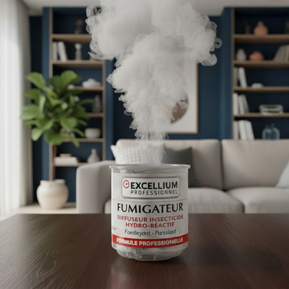 Le fumigateur Excellium Pro est un insecticide fumigène hydro-réactif. Sa formule professionnelle garantit une action foudroyante et persistante contre les insectes volants et rampants.